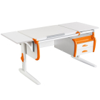 Парта Дэми СУТ-25-03К 120 см раздельная с тумбой и приставкой белый/оранжевый/белый с тумбой ТСН-01-01